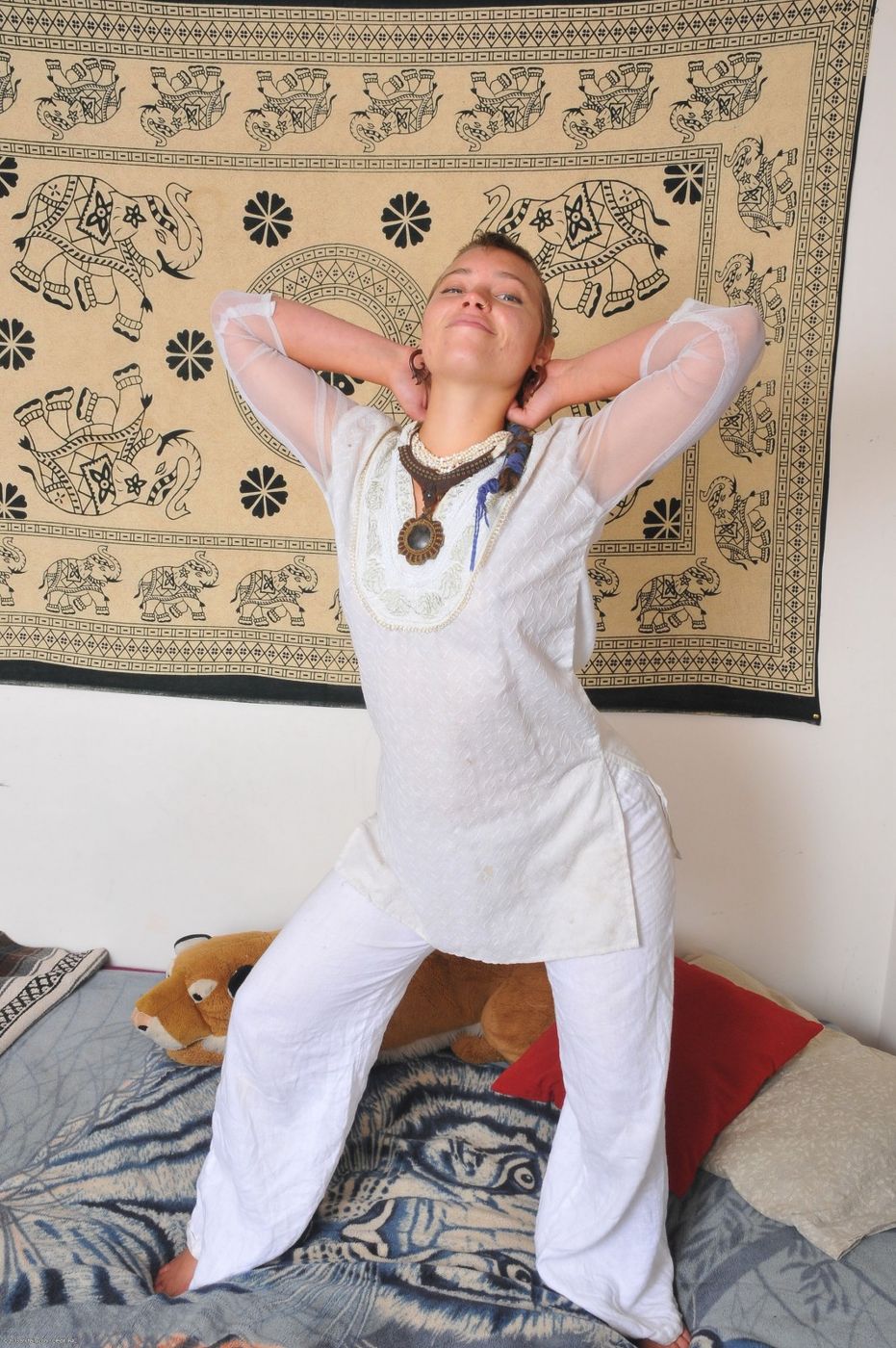 - Description: Crazy Artemisia plays with fire and does belly dancing. Her gyrating body showing her hairy pussy.