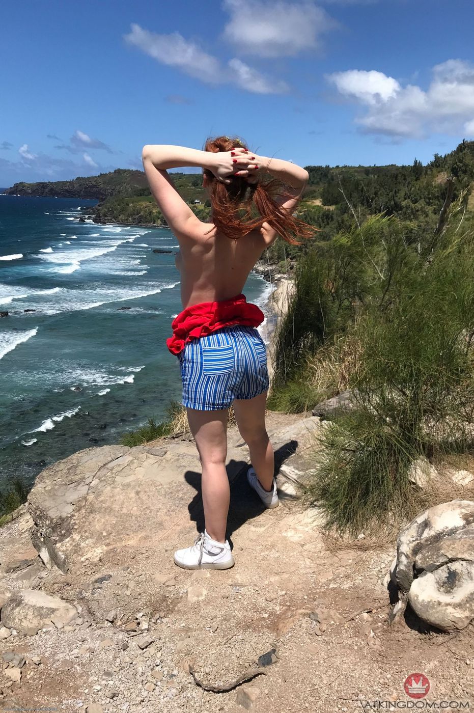 - Description: You hit the nude beach with Athena, and you take her into the water to get a better view. You want to fuck her so bad, so you get the idea to take to her to the hidden waterfall area. She sucks you off, and bend her over and fuck her good from behind. When you want to cum you turn her around and blast on her tits and face.