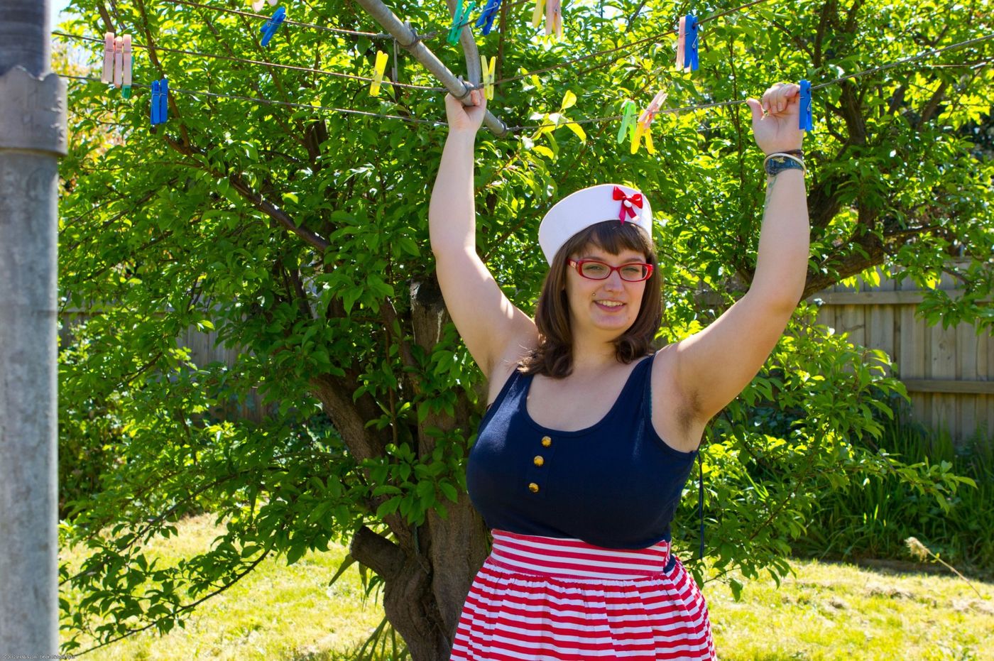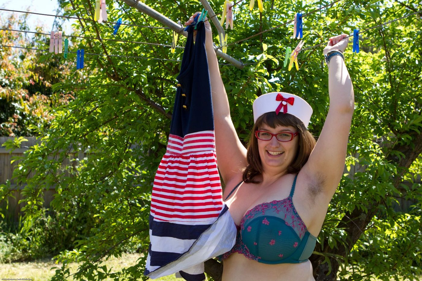 - Description: If you like huge tits and hairy pussies, Betty is the girl for you. Here, she shows off her naked body while sitting in the back yard.