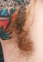 Inked Felicia Fisher shows hairy bush