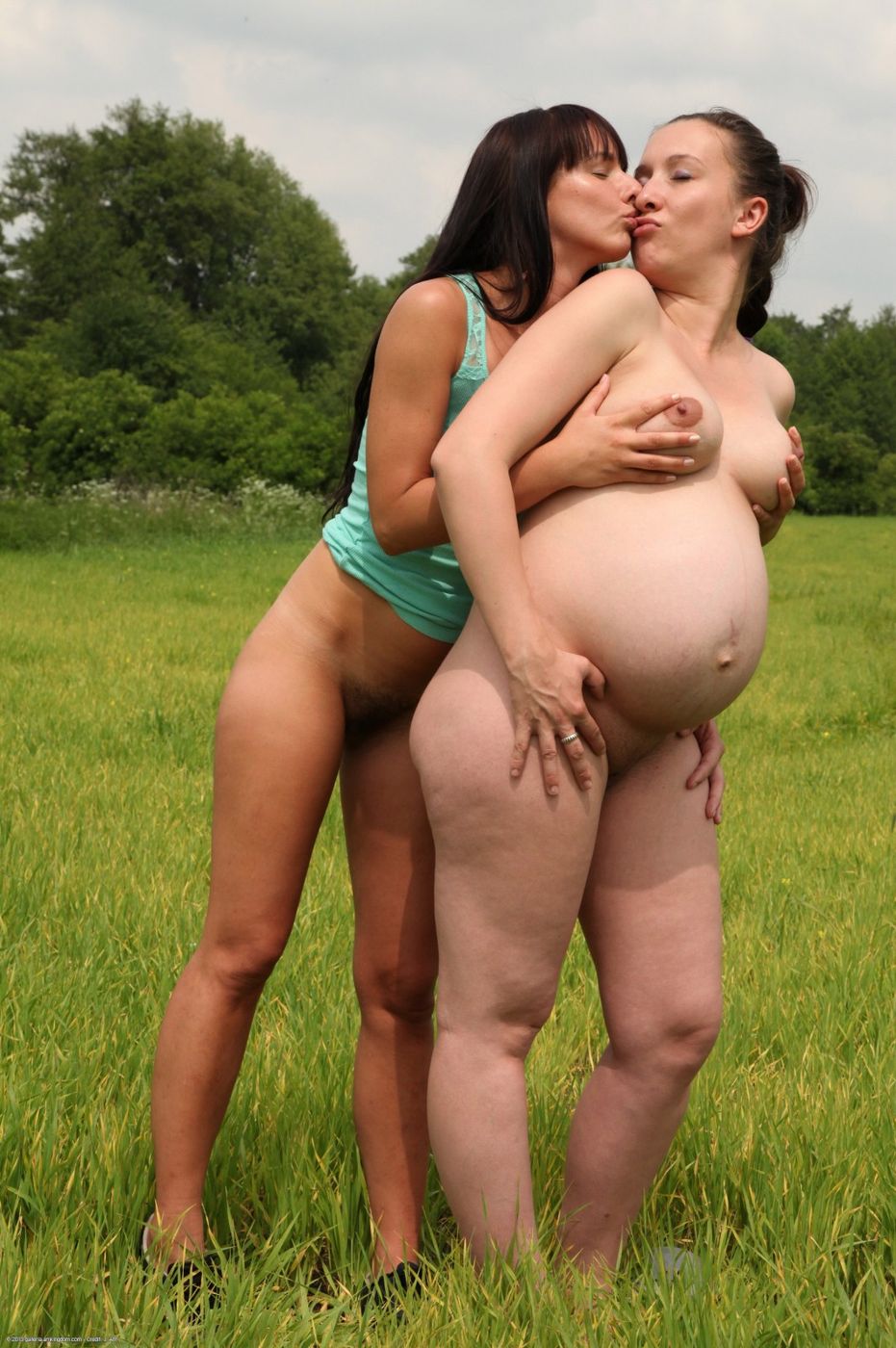 - Description: Pregnant Jessica Biel and tiny Megan Promesita have a dreamlike lesbian masturbation experience in a lush green field on a hazy morming.