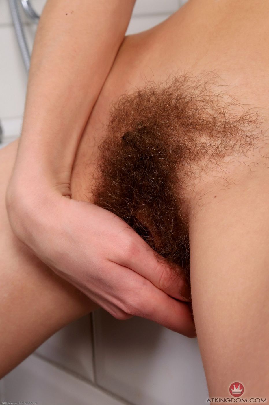 ATK Natural & Hairy: Lillian sprays her hairy pussy in the shower.