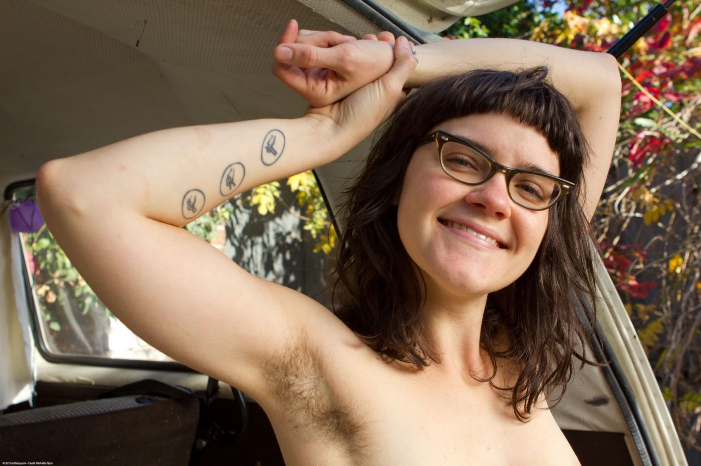 Girls with glasses hairy pits and hairy pussy gets off.