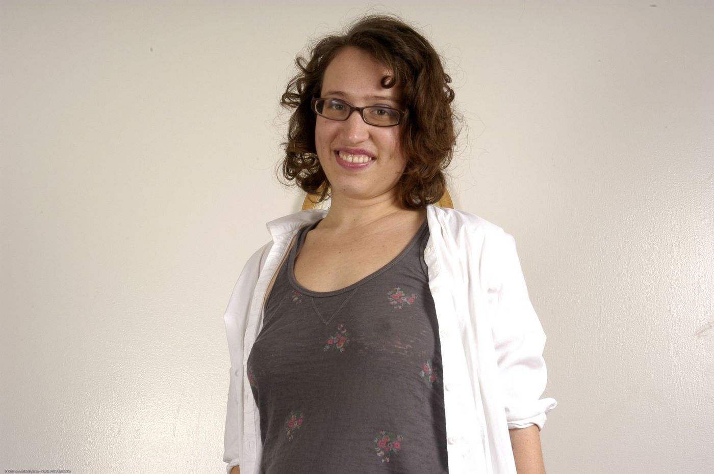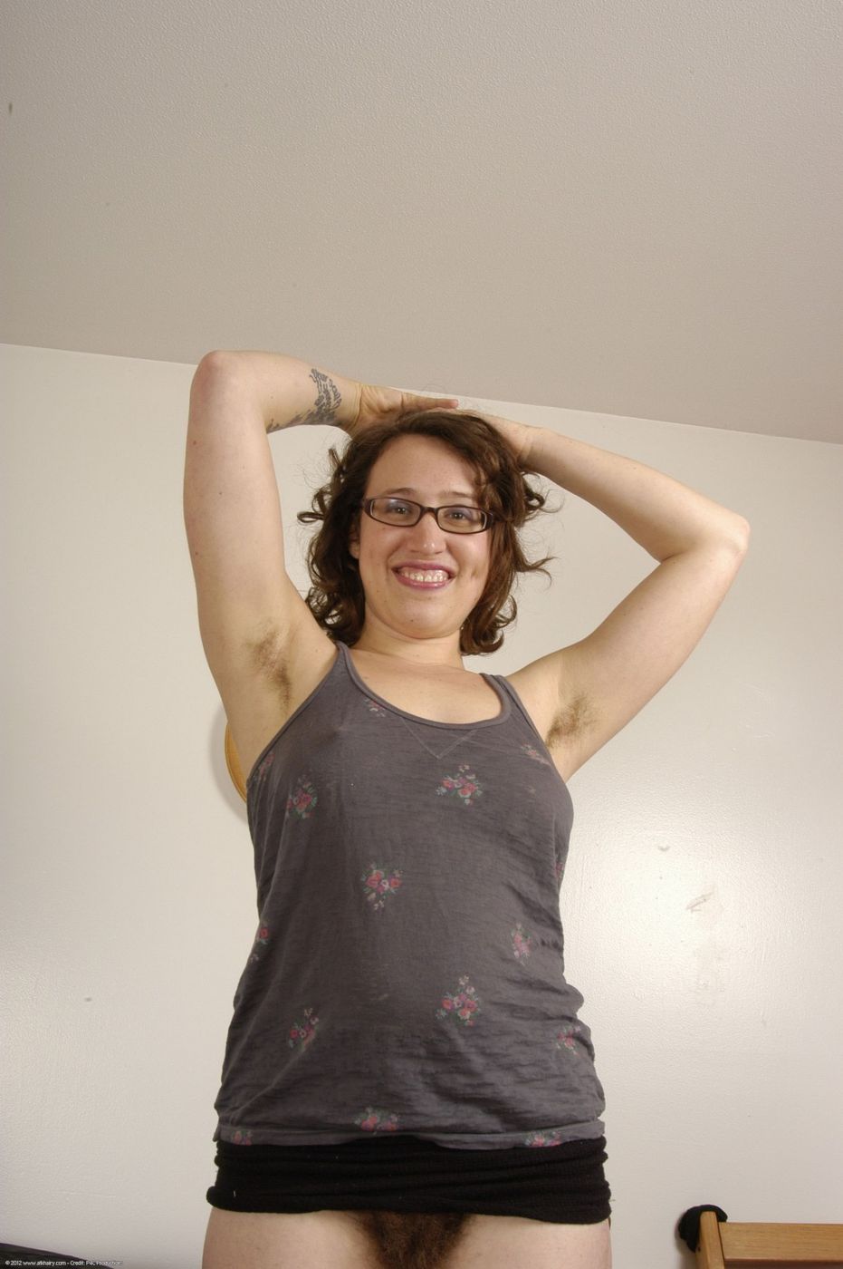 - Description: Hairy girl in glasses shows off her pussy